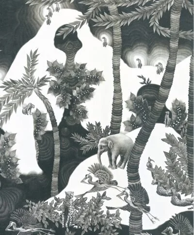 Are the leopards going to pounce on the okapi? Are they prancing with glee? Why is the gorilla riding atop the elephant?